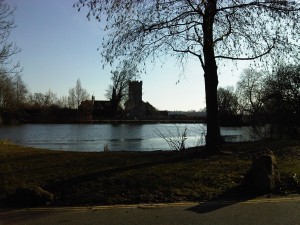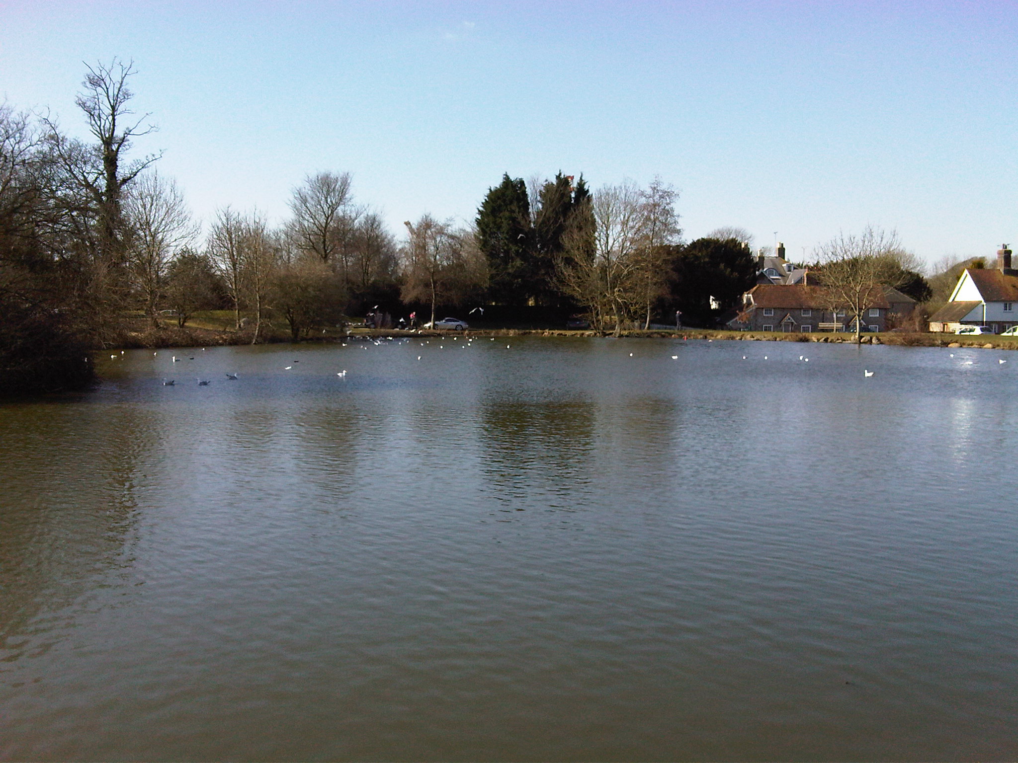 I continued on towards the football stadium, but just past Falmer Station was forced out on to the main road when the path ran out. I carefully snuck along the side of the road, took my chances with the traffic at the junction and then ran into the tranquillity of the old village (well, half of it, since the planners long-ago cut it in half), going all the way around the pond to add a few minutes to my time… and hence getting a rare shot from the other side of the pond.