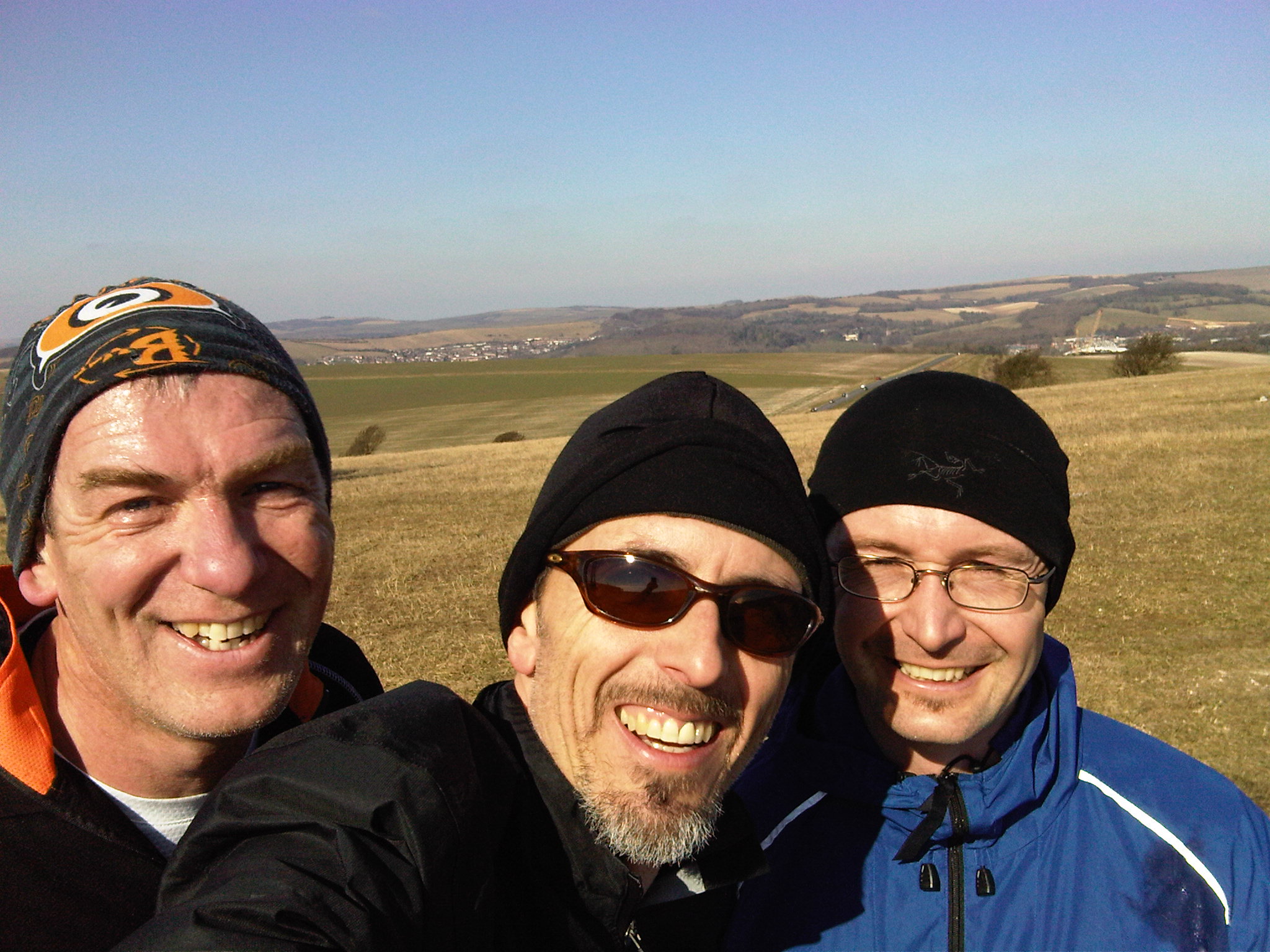 Since none of the others deigned to turn up (very sensibly, in view of the temperature) we set off up the Falmer Road, around to Newmarket Copse and then up to the top of the ridge. The wind was fweezin and comments were passed the couple of times I snuck into Cliff’s slipstream, so I had to grin and bear it! We went along as far as Swanborough Hill before heading south, down towards Balsdean pumping station.